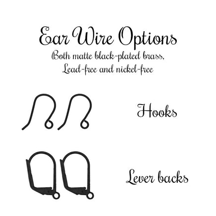 - Ear wires are matte black-finished brass, lead-free and nickel-free