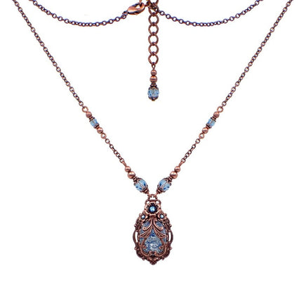 Metal findings and chain are antiqued copper-plated brass and antiqued solid copper, lead-free and nickel-free