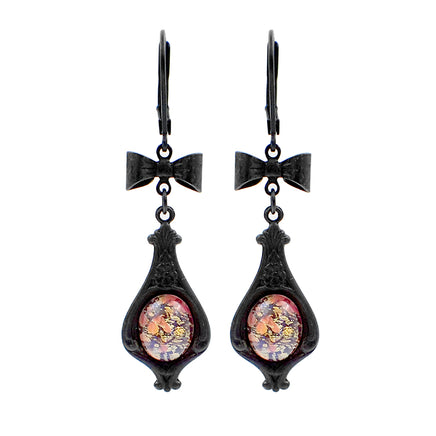 Gothic Lolita Black Brass Cabochon Earrings with Bows