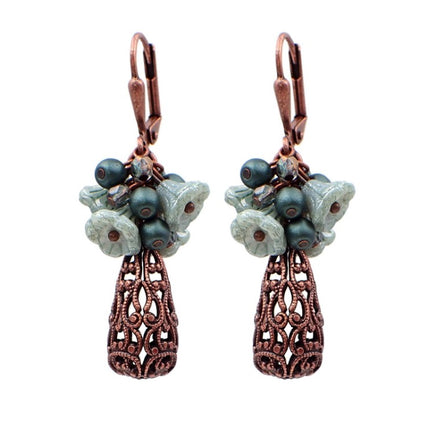 - Ear wires are antiqued copper-plated brass, lead-free and nickel-free