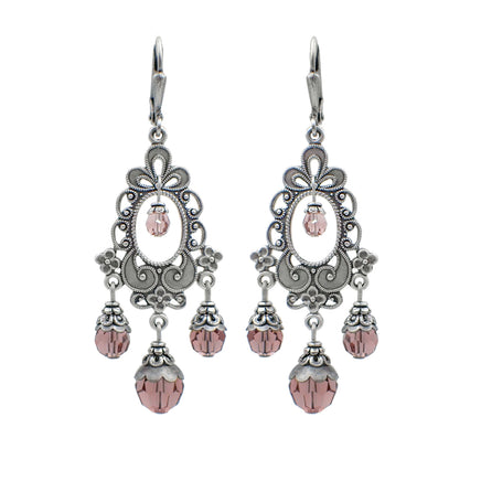 Rare antiqued silver floral components paired with blush rose-colored crystals.